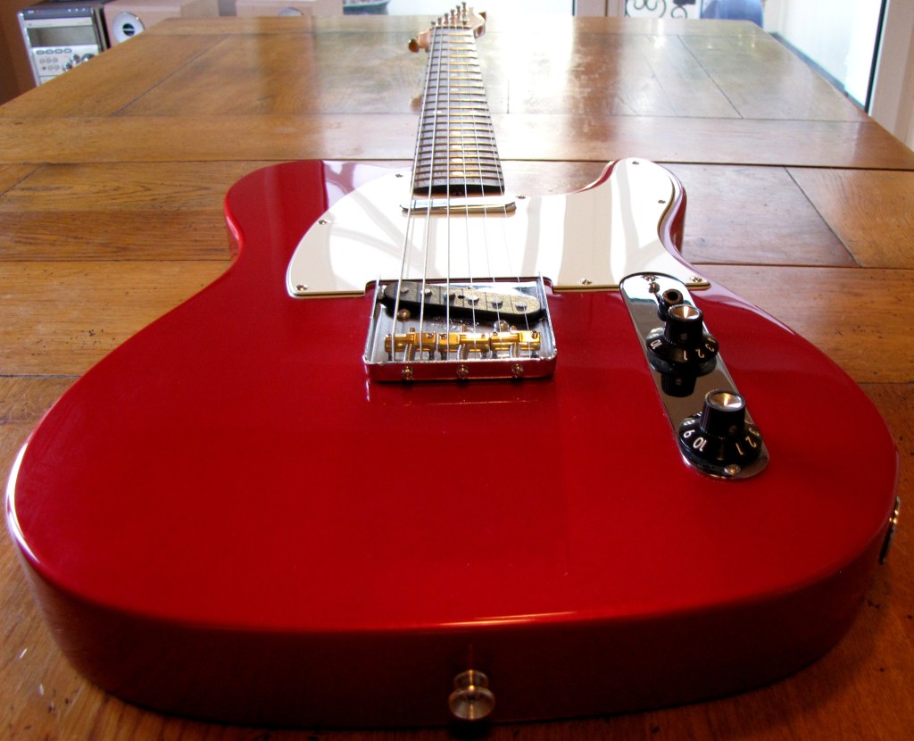 Eventually, my eyes alighted on a rather fetching Candy Apple Red rosewood-board “60s” Tele at the back of young Mr Priest’s forest of Fenders. It had been knocking around the shop a couple of years and John was very happy to see it waltz out of the shop and past the peacocks in the yard in exchange for what I considered a very reasonable sum.