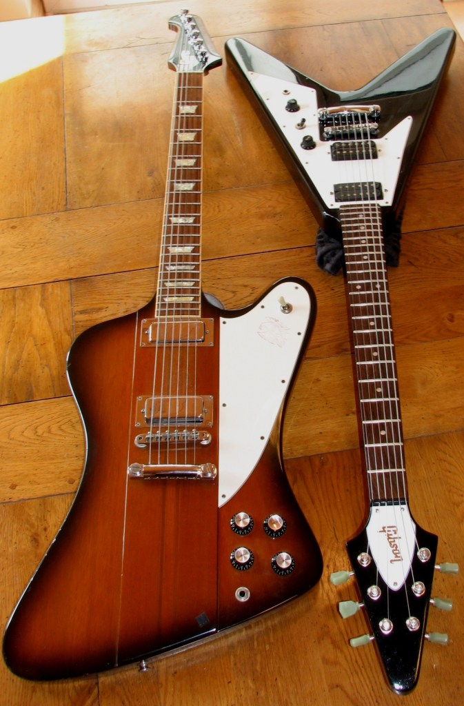 One of the things I loved instantly about the Firebird was that it wasn’t a pristine Gibson “furniture” guitar. It’d been a careless teenager’s plaything and bore the scars to prove it. Nothing major – I even liked the way years of play meant the gaudy Firebird emblem on the pickguard was almost invisibile!. The point was it was sufficiently beaten-up for someone as hard on guitars as me not to worry about, even though it was the most expensive guitar I’d ever bought – my fourth single most valuable possession after the house, the car and the Matchless Chieftain I used to own!