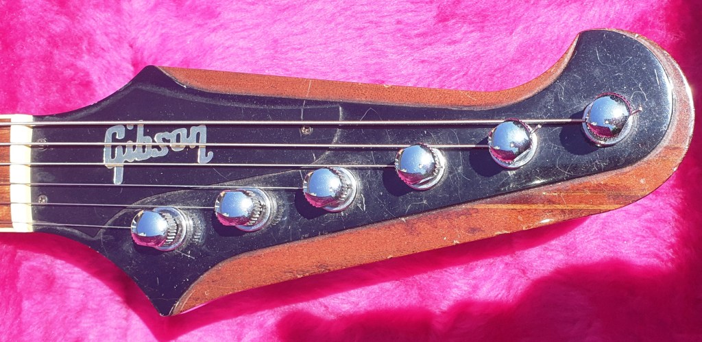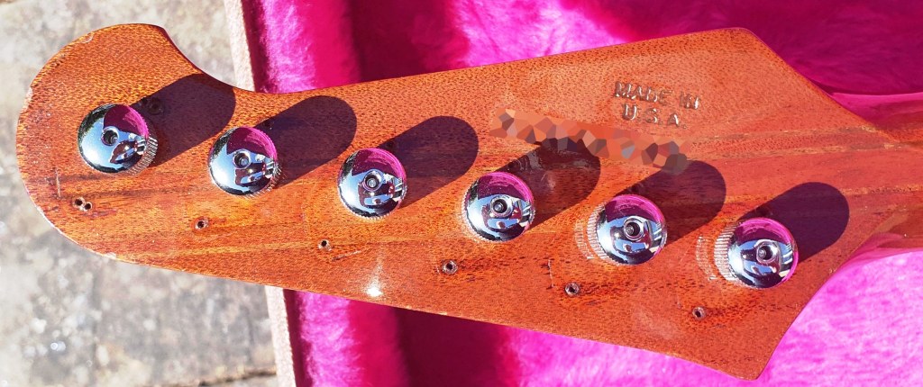 The one major modification I made early on. I swapped out the distinctive Kluson straight banjo tuners for a set of Steinberger Gearless tuners. I’d been eyeing these in the Stewmac catalogue for some time (just in case one day I bought a Firebird copy with conventional tuners!)*
