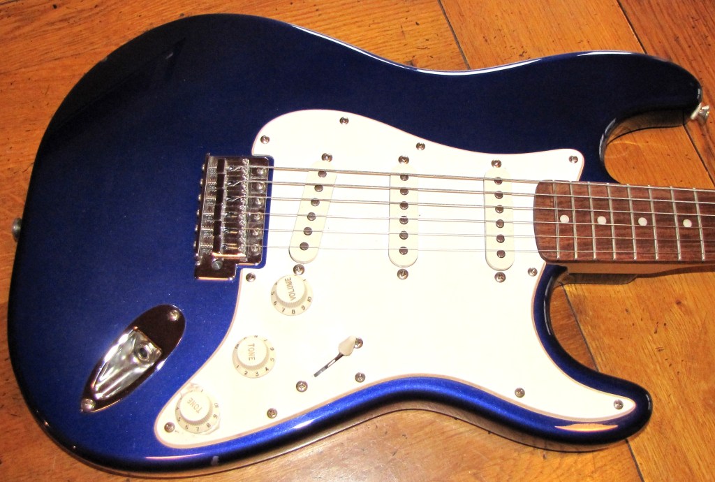 I got it on my first visit to Seattle, Washington State, USA, in 2009, not all that long before I got the Tele Custom above it. I was in the US to catch up with my pals Blues Boss and Mark Riley (more Blindman’s Blues Forum buddies). It was purple, it played OK and it was $80 – back in the days when a pound still got you about $1.50.
