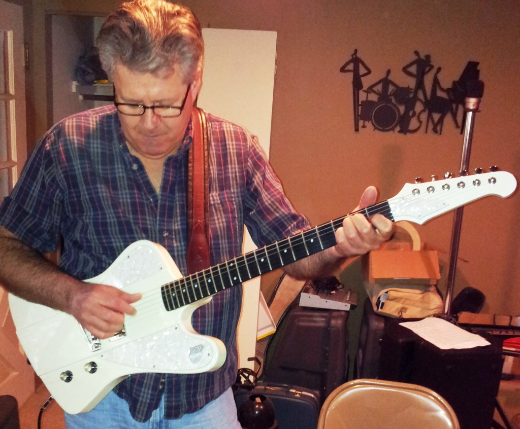 Dennis also introduced me Mark Riley, a tremendous guitar player who lives in Tacoma, a thoroughly good guy and builder of fantastic guitars under the R&B brand. (His customers include the great Sonny Landreth, who has a couple of Mark’s distinctive “Map” guitars, including an incredible resonator.)
