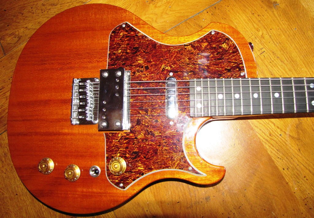 While I was recording with the R&B, I took a notion to fill that empty front pick up slot. On the advice of two people who know about these things (Mr Siegal, and Owen) I ordered a Mojotone gold foil pickup, which arrived in early May. I haven’t fitted it yet, but I’m hoping it will site nicely with the Lollar pickup – after all, that’s the combination Ry Cooder uses on the Coodercaster. Watch this space for confirmation!