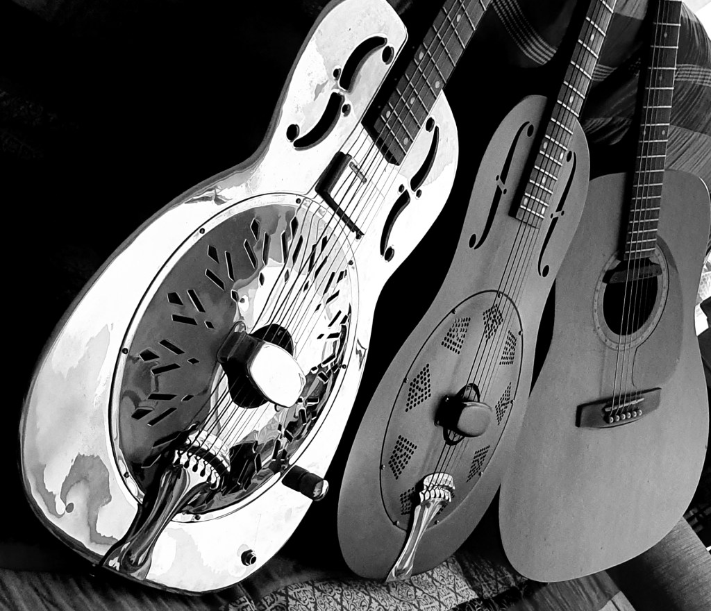 I’d been pretty happy with my heavily-modified £260 Chinese Vintage ( No 29 in this series). It sounded OK and did the job well enough. But NOTHING sounds quite like a real National! It’s a magical thing on which to play slide guitar – and just as wonderful to pass over to somebody else while you sit in front of them listen to what it really sounds like!