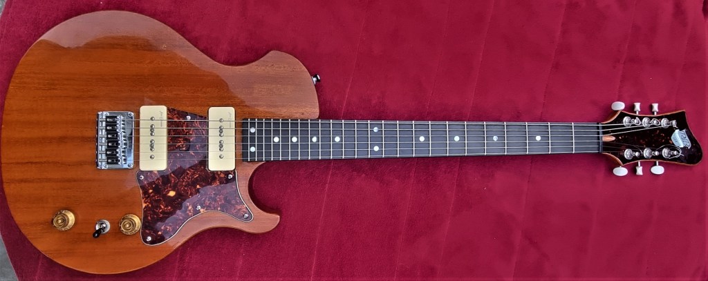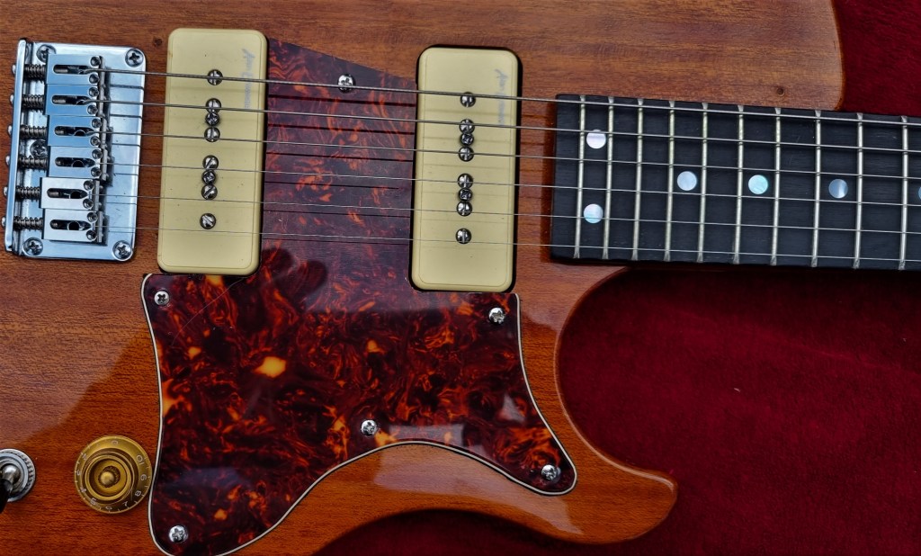 I tried a couple of things, including fitting a nice Mojo Gold Foil pickup in the neck position, but the more I thought about it, the more I was convinced the lap steel pickup plainly wasn’t working. (The same Lollar pickup would later put in a brief appearance in my USA Prototype Supro (No 58 in this blog) but never really cut it there either. Odd. Those pickups have a decent reputation. Maybe it’s just me…