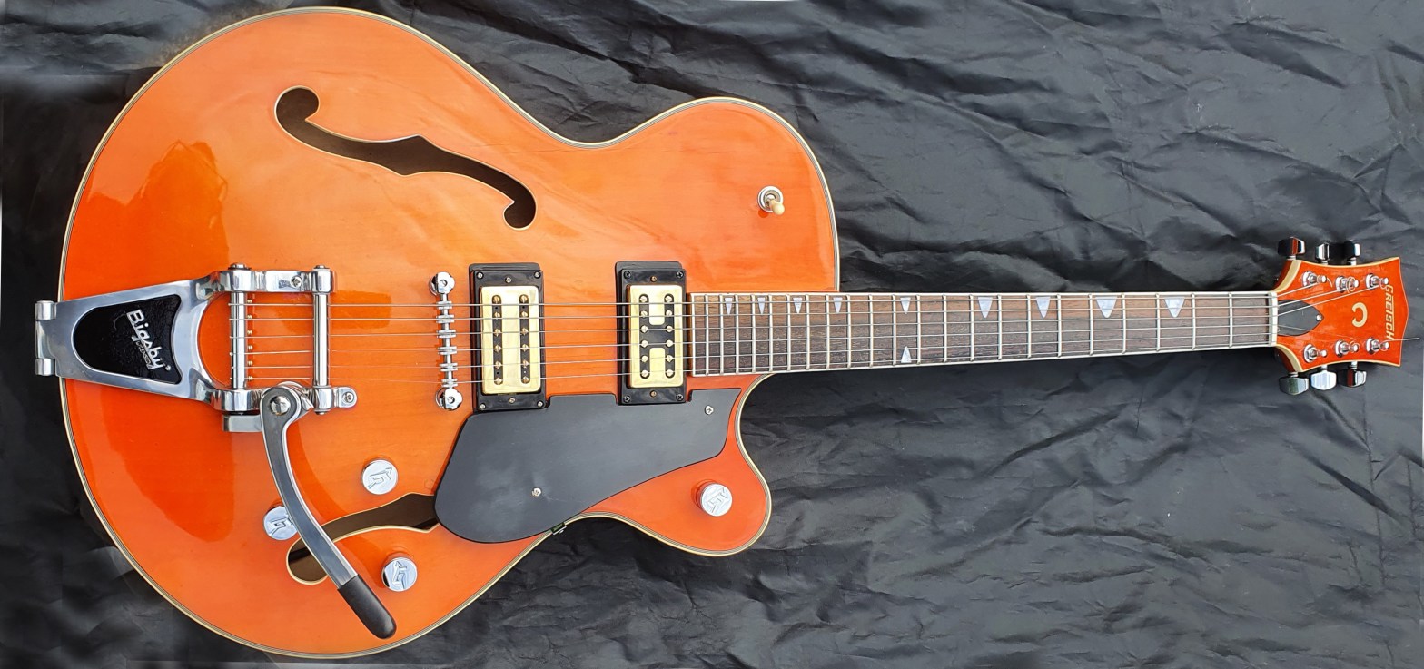 53. Fake Chinese Gretsch hollowbody IT didn’t take long for me to answer the question posed at the top of my blog on Guitar No 50: “The last guitar I’ll ever bring home?” The answer, of course, was an emphatic “No”. Fine instrument though it is, it was fairly inevitable my Greco Les Paul wasn’tContinue reading “Another new one…”
